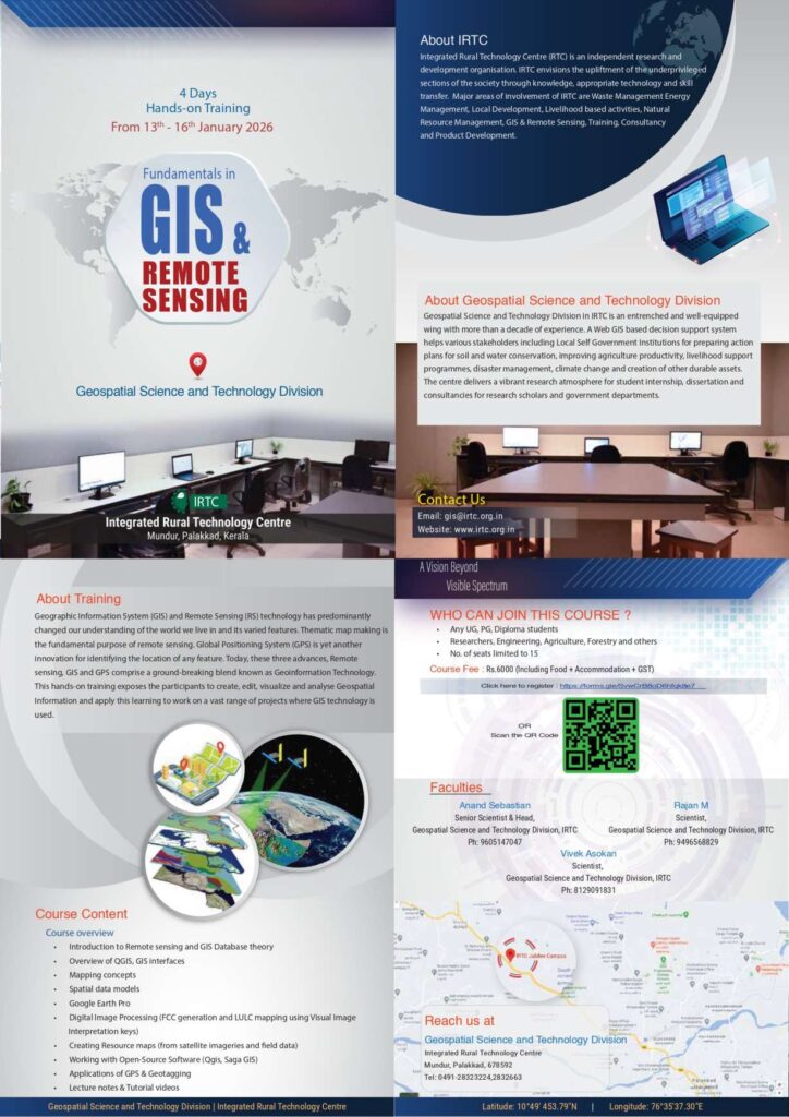 *Venue:  Geospatial Science and Technology Division, IRTC Jubilee Campus (New campus), Kozhikode – Palakkad Hwy, Opposite of Sinayi Retreat Centre, Mundur-I, Palakkad, Kerala, 678592.